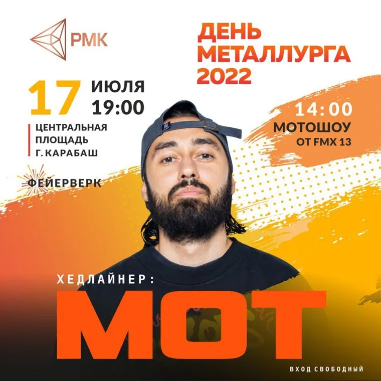 А в Карабаш, приедет рэп-исполнитель Мот . Празднование начнется с выставки декоративно-прикладного творчества, продолжится «Экстрим-шоу», с участниками команды мотофристайла FMX13, и музыкальными коллективами из Челябинска и Екатеринбурга. Мот начнет выступать в 22 часа, и через час всех зрителей ждет праздничный салют.