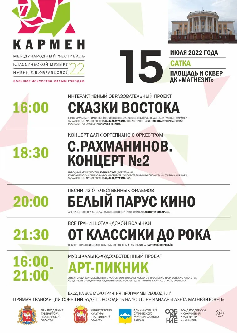 В Сатке празднование пройдет в рамках фестиваля классической музыки «Кармэн»