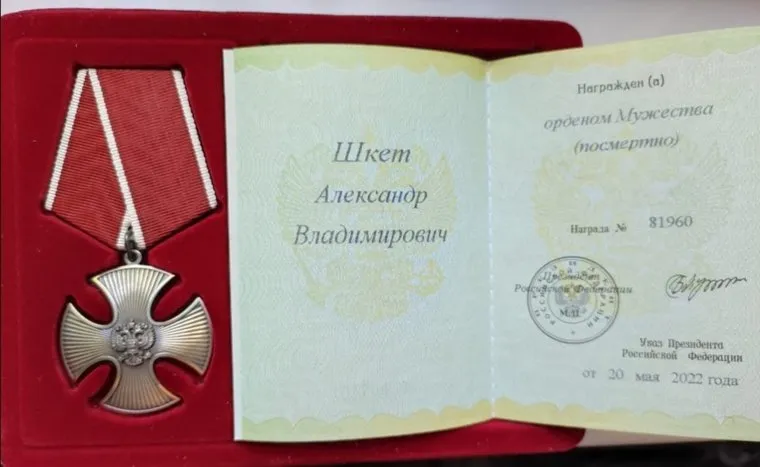 «Семье Шкет из села Плоское 15 июля посмертно вручили „Орден мужества“ их сыну, Александру Владимировичу. Он погиб при исполнении воинского долга в ходе специальной военной операции на Украине. Указ президента РФ о награждении подписан 20 мая», — говорится в сообщении.
