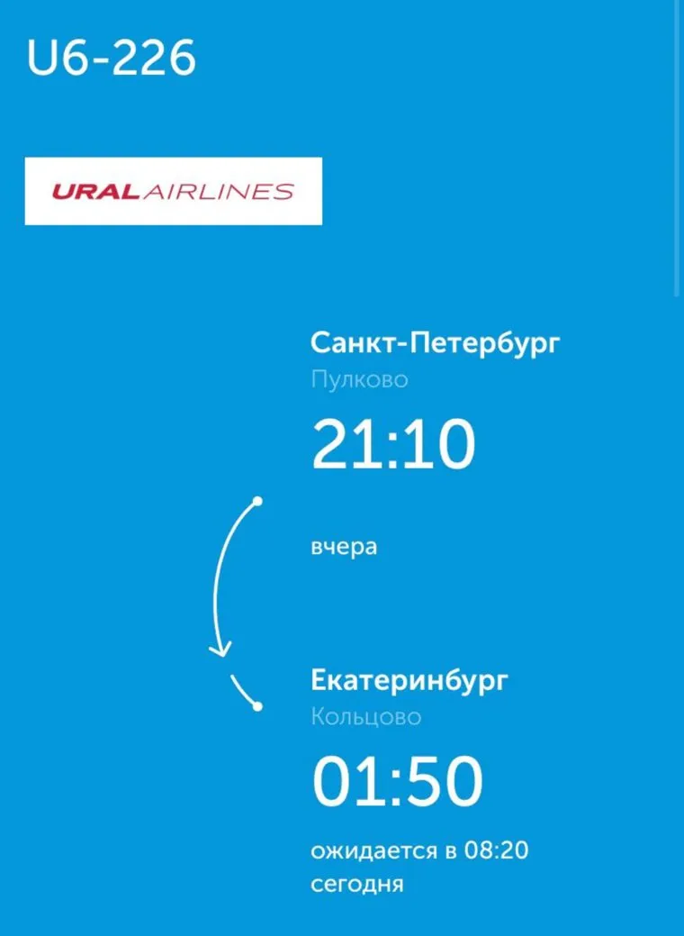 Рейс из Санкт-Петербурга в Екатеринбург экстренно задержали перед вылетом