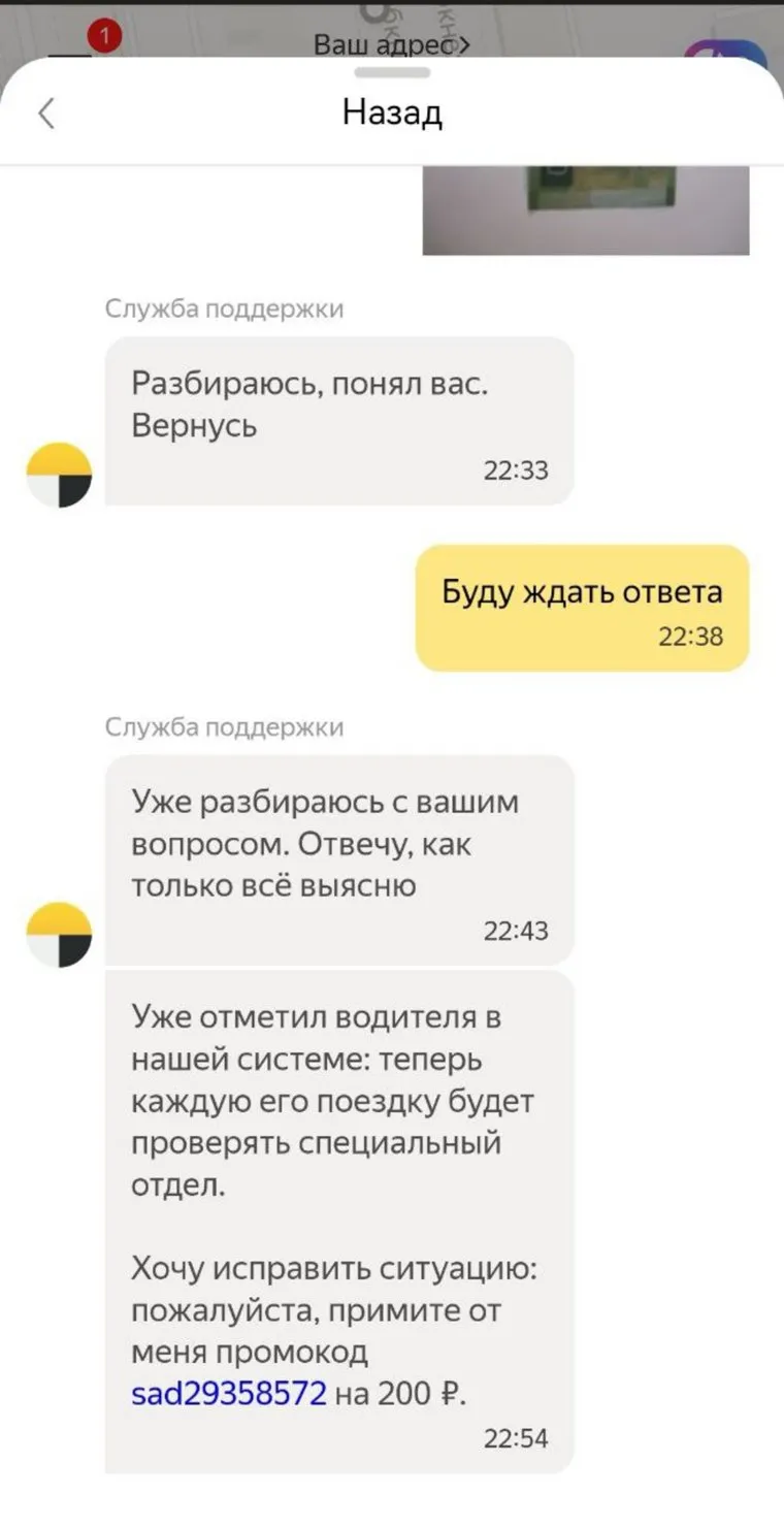 В качестве извинений «Яндекс. Такси» прислал женщине промокод на 200 рублей