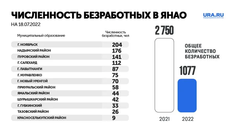Число безработных в ЯНАО резко сократилось. Инфографика