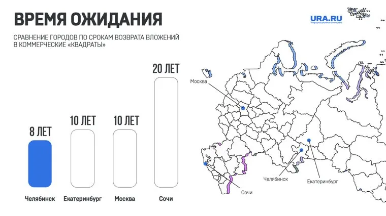 Бизнес-недвижимость в Челябинске дает доход быстрее, чем в Сочи. Инфографика