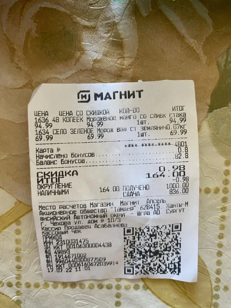 «Ценник-конь на продукты, вы вообще больные что ли: что „Магнит“, что „Лента“, что „Пятерочка“ — у вас товары с ОАЭ едут?! Все товары российского производства, не санкционные! Доллар достиг 50 рублей! Когда этот бардак закончится?!» — негодует автор публикации. К посту автор прикрепил фото чека, на котором видно, что суммарная цена за два пломбира в вафельном стаканчике марки «Село Зеленое» и «48 копеек» составила 164 рубля.«Почему еще не написали: „Зачем вы покупаете мороженое, готовьте дома?“» — написал в комментариях пользователь по имени Александр.