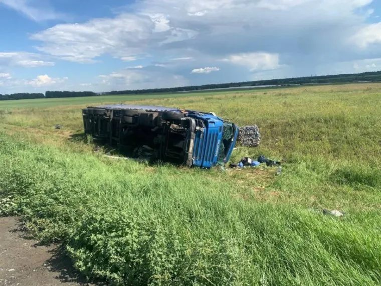 Фура, упавшая на трассе Курган-Челябинск, спровоцировала пробки. Фото