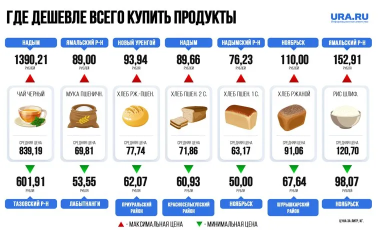 Агентство проанализировало, в каком городе дешевле всего купить продукты первой необходимости, а в каком дороже. Так, жителям Ноябрьска покупки обойдутся дешевле всего в регионе. А вот самые высокие цены зафиксированы в Ямальском районе.
