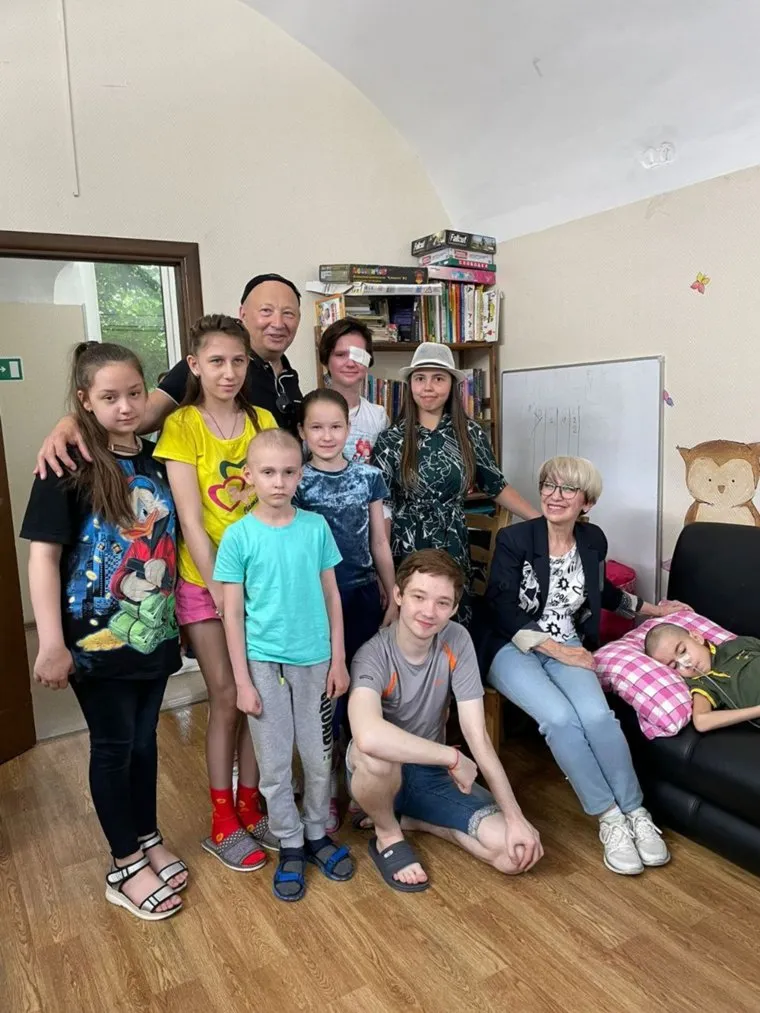 Юрий Гальцев с детьми из Донбасса, проходящими лечение