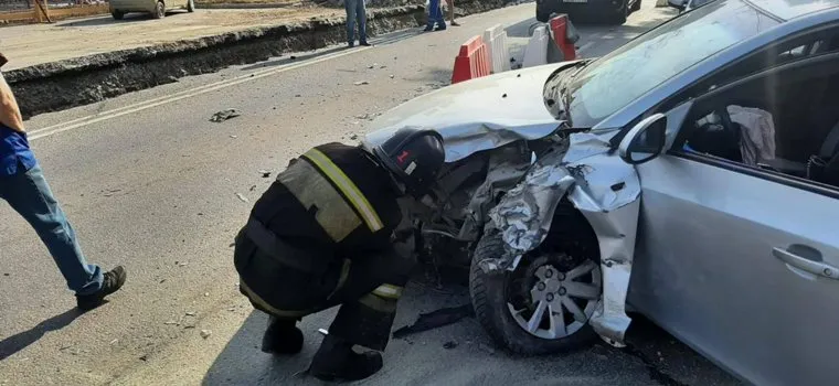 Chevrolet Cruze наехала на пластиковое ограждение