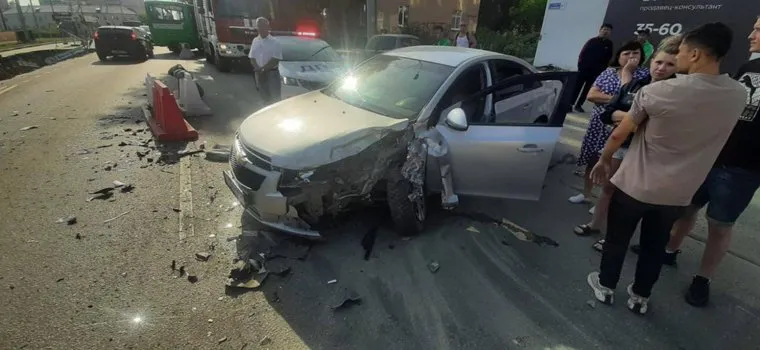 «ДТП произошло в 08:30 на Сулимова, 61. По предварительной информации, неустановленный водитель автомобиля Chevrolet Cruze, двигаясь по Сулимова со стороны Омской в сторону Учителей, допустил наезд на разделительное пластиковое ограждение, после чего столкнулся с машиной Chevrolet Cobalt», — рассказывают инспекторы.