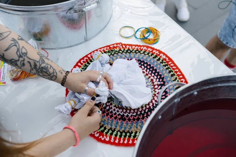 Помимо показа, гостям фестиваля предложили окрасить футболки с помощью техники тай-дай