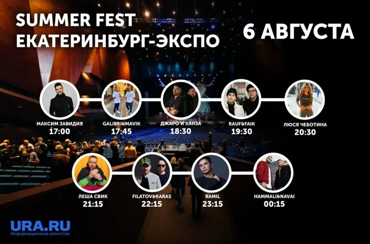 После масштабного фестиваля « Ночь музыки» екатеринбуржцев ждет не менее крупное музыкальное мероприятие Summer Fest. Оно пройдет в Екатеринбурге впервые. 18 музыкантов выступят на одной сцене МТС Live Hall (МВЦ «Екатеринбург-ЭКСПО») в течение двух дней — 6 и 7 августа. URA.RU подготовило расписание выступлений, чтобы вы смогли попасть на концерт любимых музыкантов вовремя.