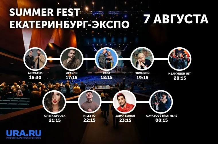 В Екатеринбурге за два дня выступят Билан, Бузова, Niletto и Rasa. Программа
