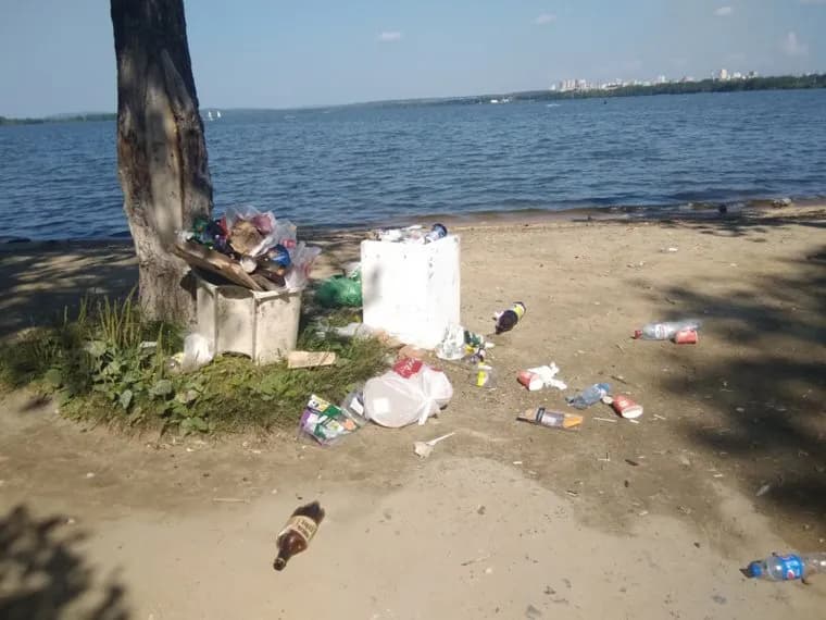 Читатели говорят, что такая же ситуация на Верх-Исетском пляже была и два дня назад. Морозов парирует: поскольку пляж дикий, ежедневно с него вывозят по машине мусора