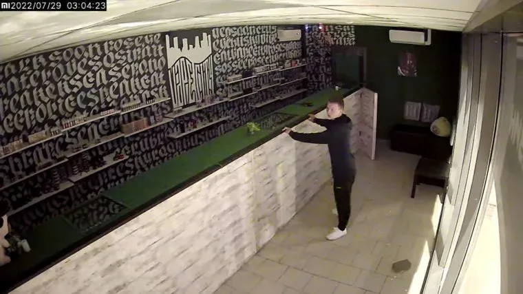 На видео попал момент, как неизвестный человек без маски ворвался в магазин и стал сметать с прилавков все, что попалось под руку. Он действовал быстро, и, собрав основной товар, скрылся. Для проникновения в магазин предполагаемый грабитель разбил стеклянную дверь кирпичом.