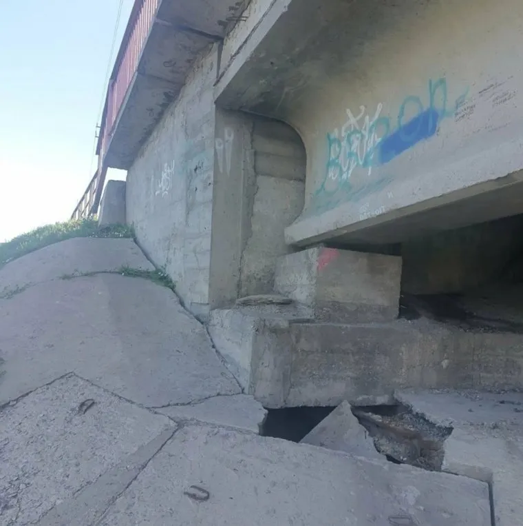 Помимо провалов, курганцы сообщают о трещинах и сколах бетонных конструкций