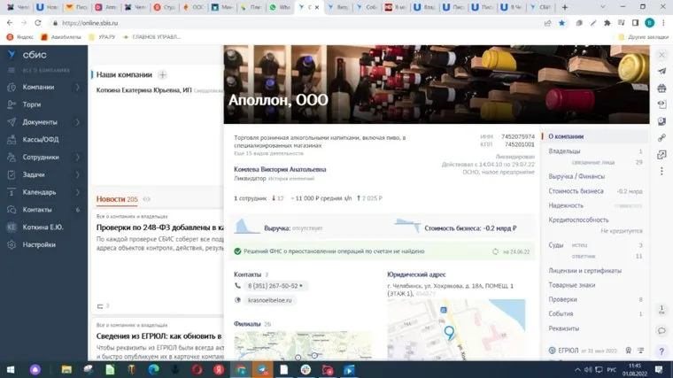 «ООО „Аполлон“ ликвидировано 29 июля 2022 года. Предприятие действовало в Челябинске с 14 апреля 2010 года по юридическому адресу ул. Хохрякова, дом 18а. За последний год доходы ООО „Аполлон“ существенно сократились, при этом оно получило еще больший убыток в 2021 году (-1,4 млн рублей)», — приводит данные СБИС.