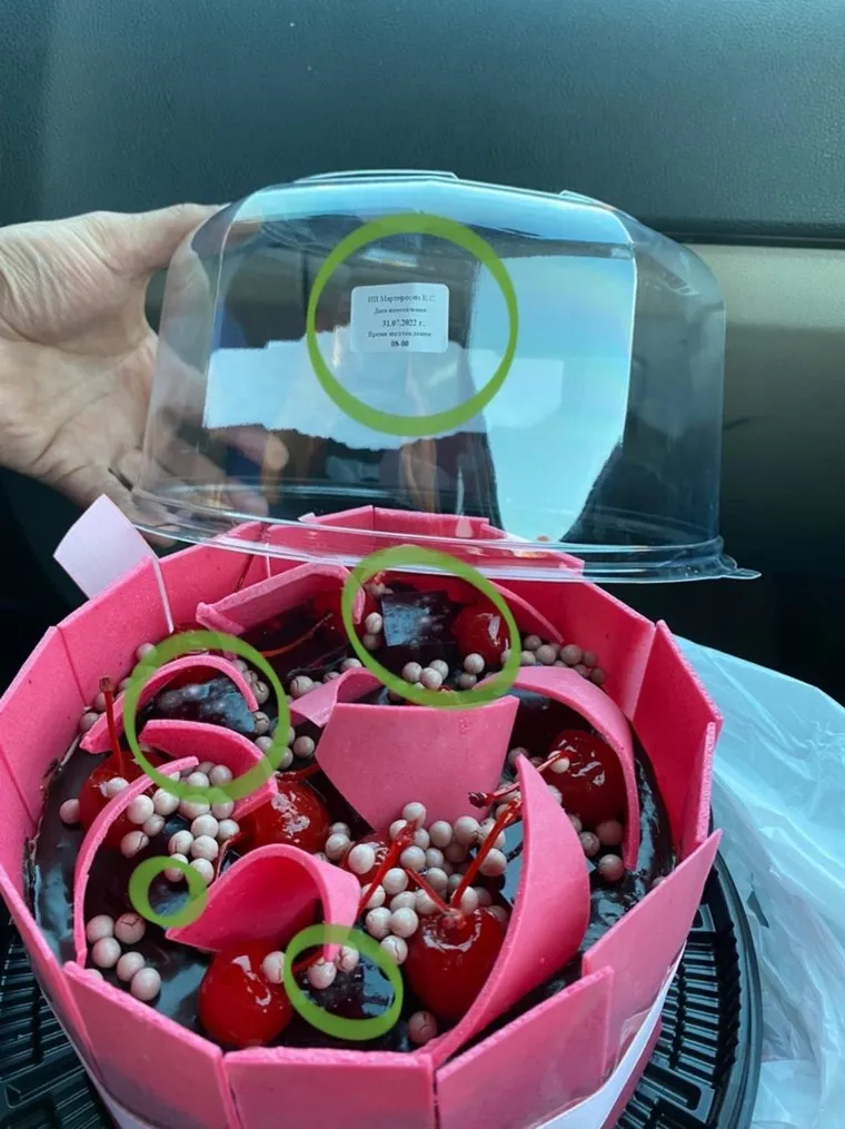 «Кондитерская „Кристина“ упорно идет ко дну. Торт был куплен вчера <…>, по маркировке свежий, тогда же и была обнаружена вкусняшка [плесень]» — написала Сердюк в группе «ГОРОРО».