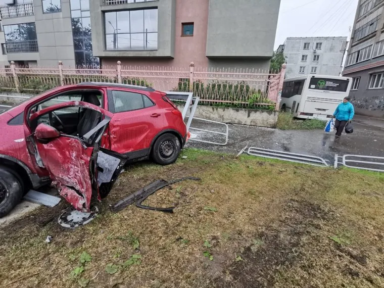 «2 августа в 06:59 водитель автобуса „НЕФАЗ“, мужчина 1969 года рождения, двигался по Комсомольскому проспекту прямо, проехав пересечение Комсомольского проспекта и улицы Молодогвардейцев, водитель автобуса не справился с управлением и допустил выезд на полосу встречного движения, после чего врезался в стоящий автомобиль Opel Mokka, за рулем которого находился мужчина 1954 года рождения. От удара Opel cтолкнулся с „Лада Гранта“, за рулем которого была женщина 1974 года рождения. После ДТП автобус и Opel врезались в забор, затем автобус совершил наезд на крыльцо гостиницы „Виктория“», — рассказали в пресс-службе.
