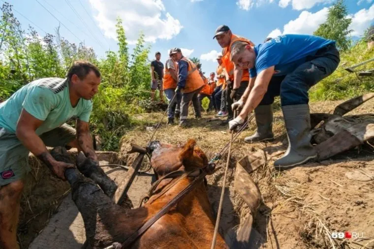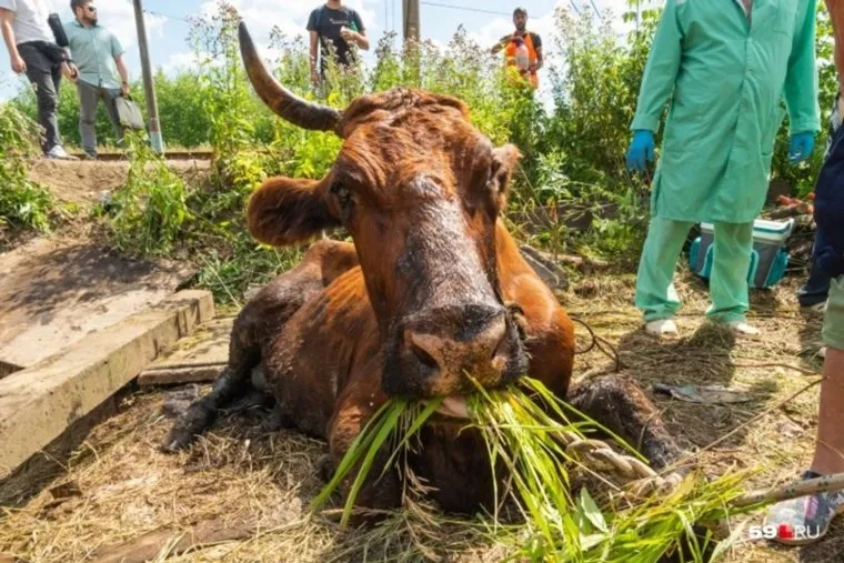 «Животное провалилась в ливневую канализацию в среду, 3 августа. Место безлюдное, заросшее высокой травой, а рядом только линия железной дороги. Но очевидцы все-таки заметили корову и позвонили спасателям», — сообщает 59.ru.