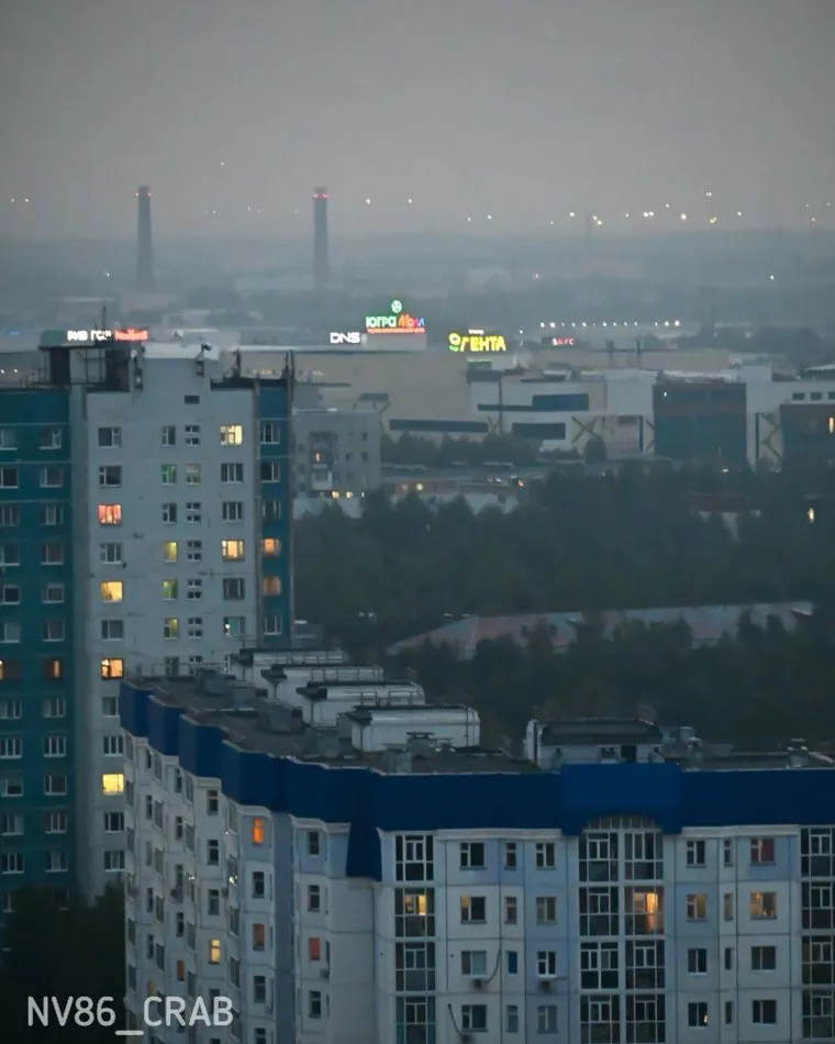 Нижневартовск затянуло смогом из-за лесных пожаров. Фото