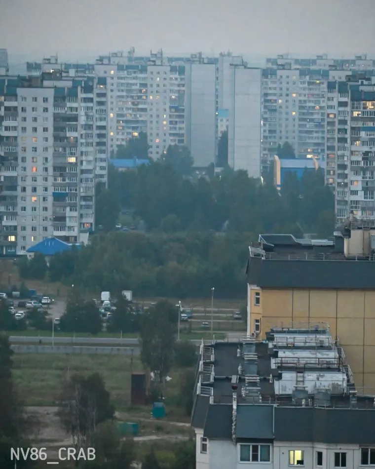 Смог от лесных пожаров накрыл Нижневартовск (ХМАО). Информация и фото опубликованы в паблике «Типичный краб 86|Нижневартовск» в соцсети «ВКонтакте».