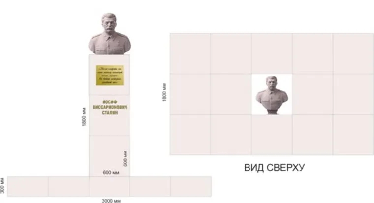 «Настоящим уведомляем Вас [главу Сургута Андрея Филатова] о намерении инициативной группы граждан установить постамент с бюстом Иосифу Виссарионовичу Сталину в городе Сургуте на Мемориале славы. Финансирование, доставку и установку постамента с бюстом осуществляет Сургутское отделение партии СР. Просим вас разрешить установку бюста на территории Мемориала славы Сургута. Ширина постамента будет 3 метра, а высота памятника один метр 80 сантиметров», — говорится в письме.