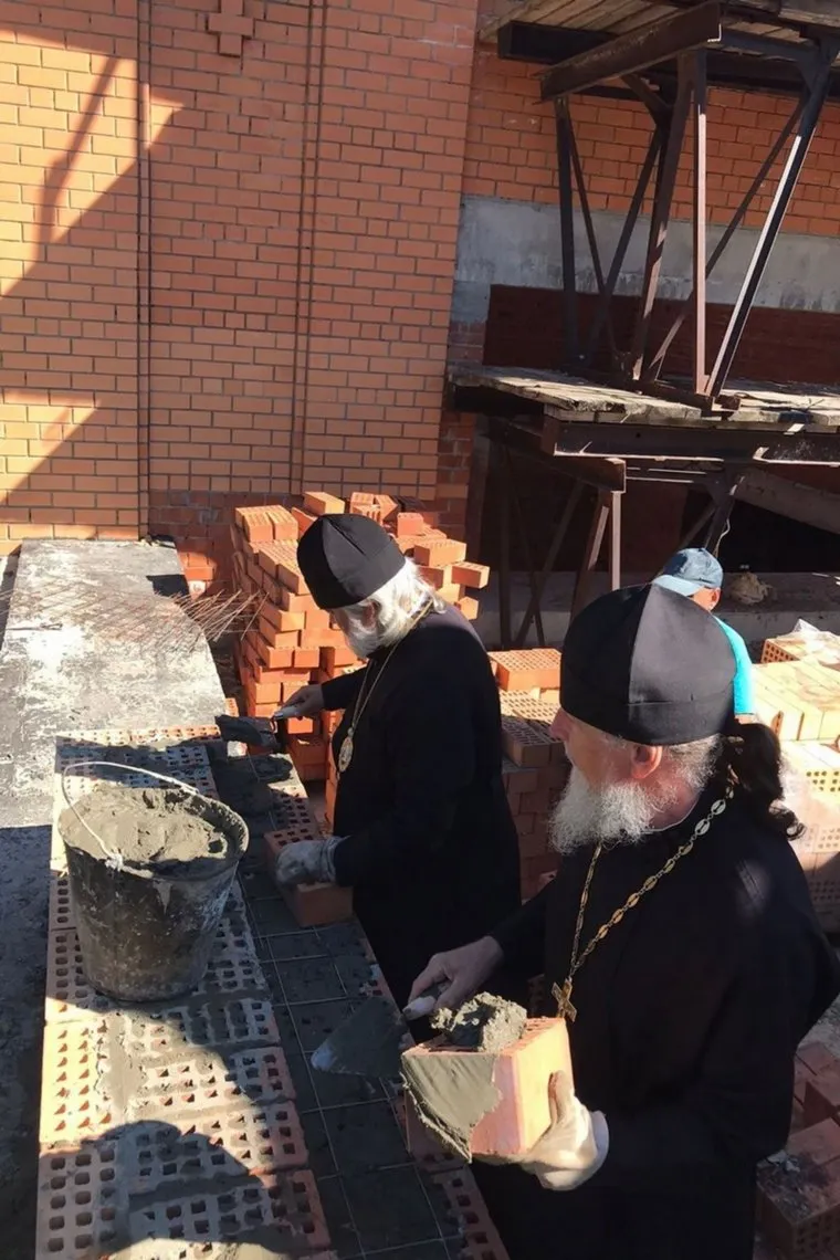 Первые кирпичи, помолившись, положили владыка Пармен и протоиерей Виктор Константинов