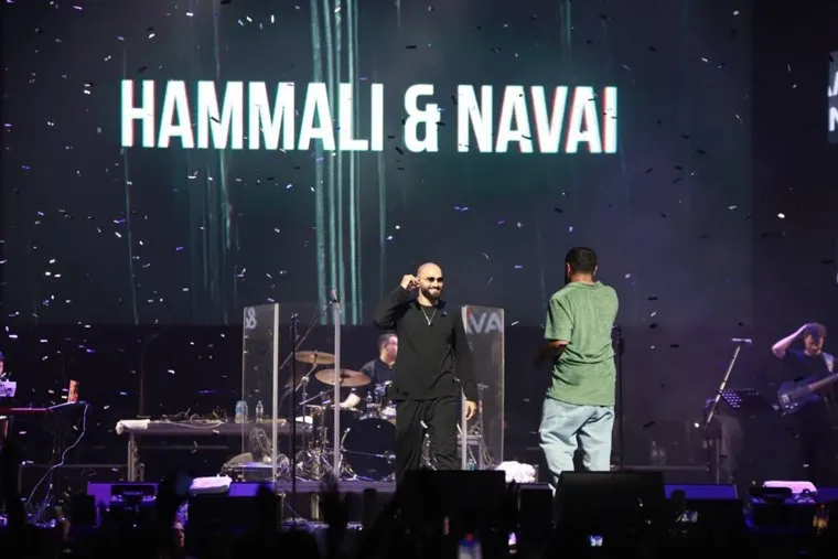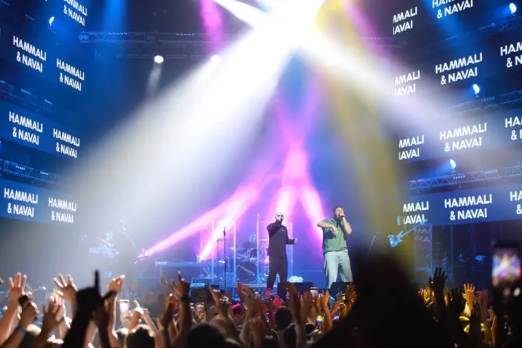 1:06 : На сцену вышли Hamali&Navai. Музыкантов закидали воздушными шариками, певцы со сцены попросили так больше не делать.