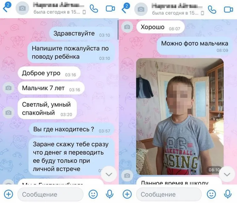 «Одна из наших подписчиц обнаружила объявление в социальной сети о продаже женщиной 7-ми летнего ребенка. Мы немедленно вступили с этой женщиной в переписку и начали выяснять все подробности. Оказалось, что женщина имеет еще двоих детей от второго брака. Наргиза пояснила, что муж был против старшего сына, и они решили продать ребенка, чтобы рассчитаться со своими долгами. Женщина обозначила цену в 300 000 рублей», — сообщили сотрудники организации в своей группе в соцсети «ВКонтакте».