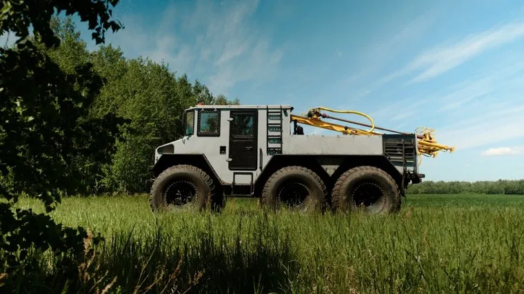 Вездеход с крано-манипуляторной установкой и прицепом способен заменить сразу три единицы техники: грузовик, жилой модуль и кран