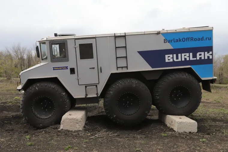 Классический грузо-пассажирский вездеход «Бурлак» подходит для перевозки грузов весом до трех тонн и вмещает до 19 человек