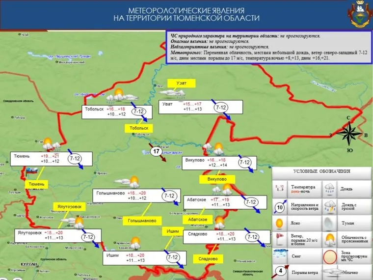 В Тюменской области 14 августа ожидаются дожди и порывы ветра до 17 метров в секунду. Об этом сообщает пресс-центр ГУ МЧС по Тюменской области на официальном сайте.