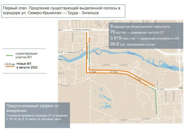 В Челябинске на участке улиц Северо-Крымской, Труда и Энгельса в ближайшее время выделят отдельную полосу для общественного транспорта. Как сообщил 15 августа во время пресс-конференции замминистра дорожного хозяйства Александр Егоров, протяженность участка составит 3,8 километров.