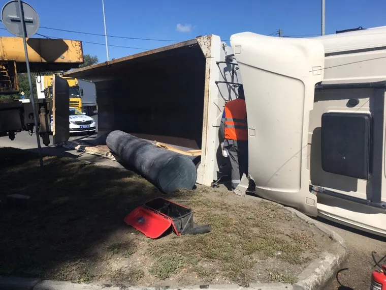 Тяжелый грузовик опрокинулся на пересечении Свердловского проспекта с улицей Куйбышева в Челябинске, частично блокировав движение. Об этом 17 августа сообщили URA.RU очевидцы.