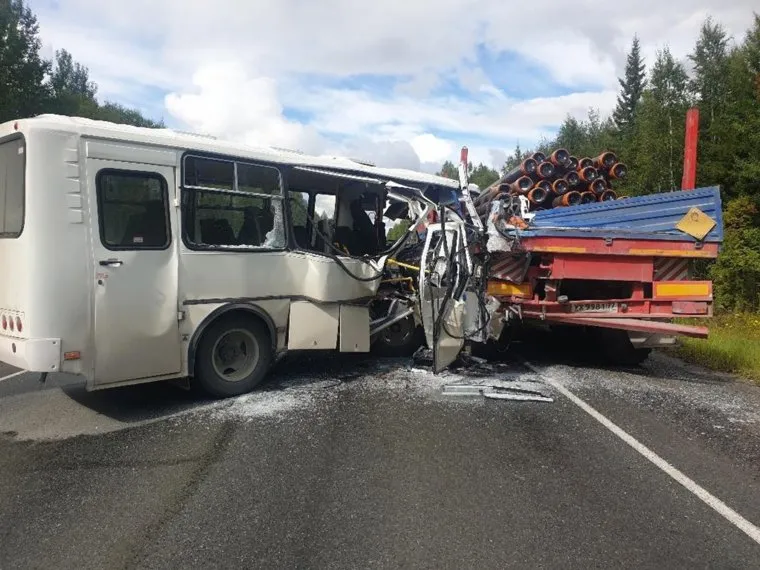 В ХМАО на «трассе смерти» автобус с пассажирами врезался в КАМАЗ. Фото