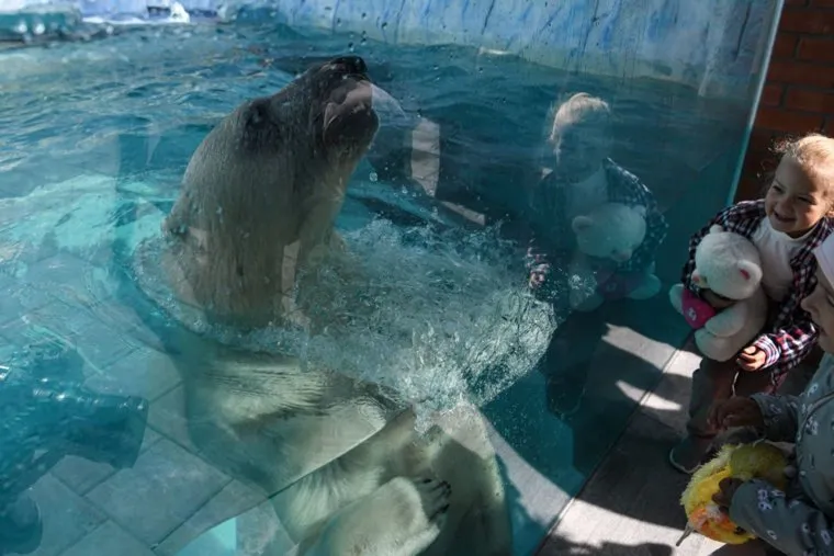 Власти Екатеринбурга открыли в зоопарке новый вольер для белых медведей, строительство которого было условием переезда белой медведицы Хатанги из Москвы. Животное уже на месте, и теперь в городе две белых медведицы — Айна и Хатанга (сейчас они живут раздельно).