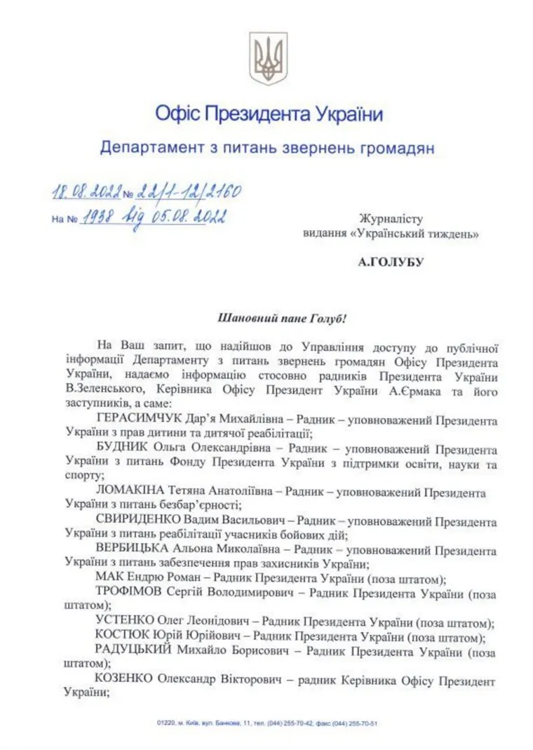 По словам издания, в настоящий момент у президента Украины Владимира Зеленского и руководства офиса президента всего 46 штатных и внештатных советников. И в этом списке Алексея Арестовича, который по сей день представляется советником главы офиса президента Украины Владимира Зеленского, — нет. Соответствующие документы направили изданию в офисе президента в ответ на запрос.