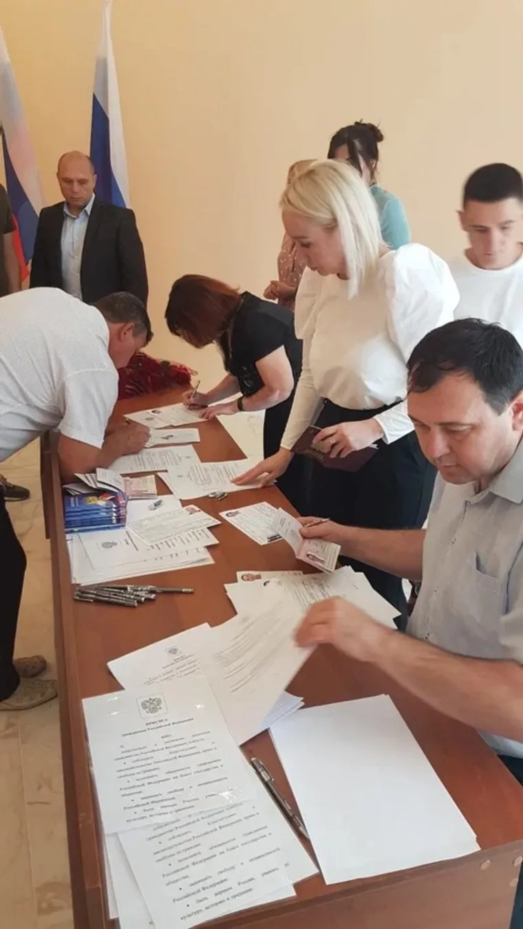 «Первые 10 паспортов получили жители города Купянска, сдавшие документы в начале августа. Каждый из жителей принял присягу, после чего получил заветный документ», — говорится в сообщении.