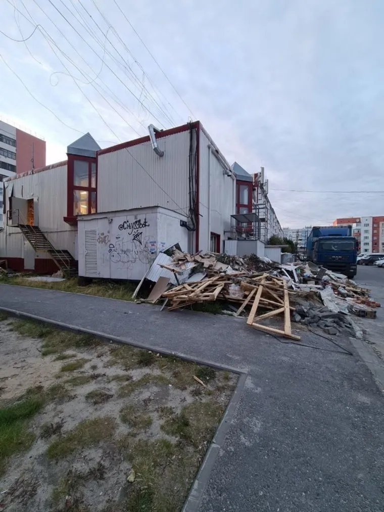 «На улице Молодежная <…> в ТЦ Янтарь ведутся работы по капитальному ремонту. Никакого ограждения этой территории нет. Весь строительный мусор складируется на улице прямо перед входом в школу, а скоро первое сентября. Сегодня неизвестно, по какой причине было спилено рядом стоящее дерево, скрывавшее безобразную стену этого здания», — пишет автор на условиях анонимности.