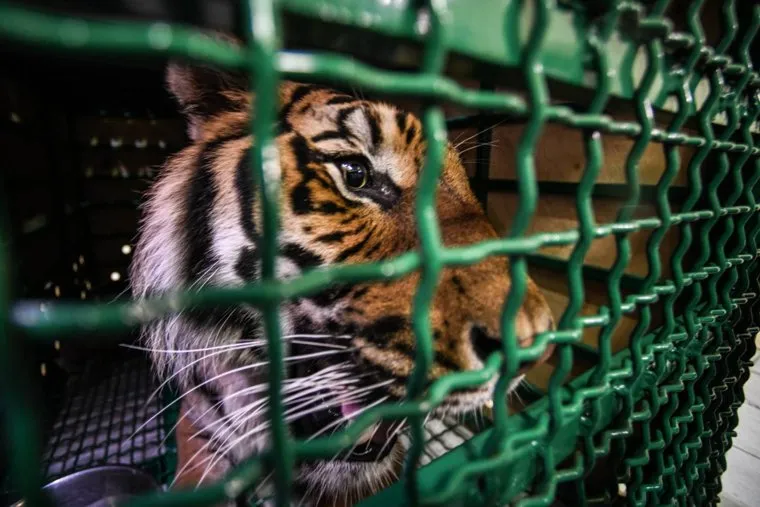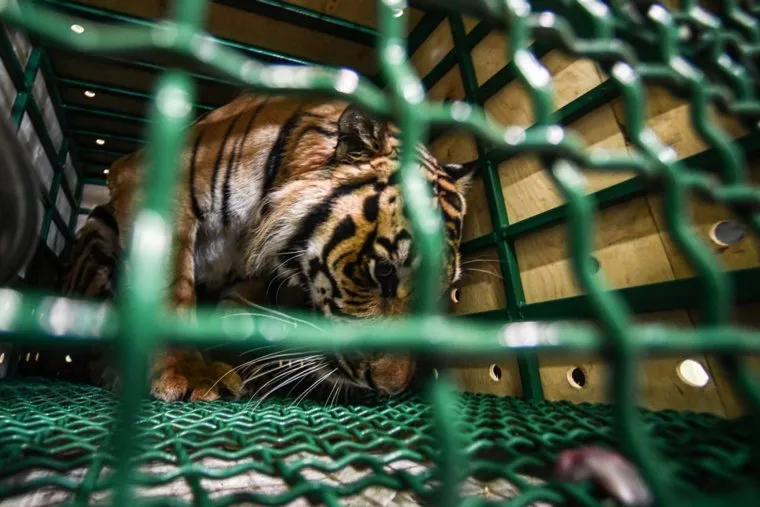 Тигра-инвалида отправили на реабилитацию из Кольцово в Хабаровск. Фото