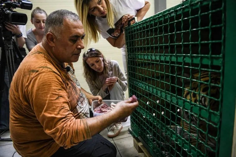 «До отлета Гектор ел темное мясо — баранину, говядину. Это необходимо для того, чтобы поднять гемоглобин, а то он во время полета падает. И еще сутки тигр голодал: вчера вечером сидел и такими голодными глазами на меня смотрел. Мне так тяжело было смотреть», — поделился секретами подготовки перед полетом Даллакян.