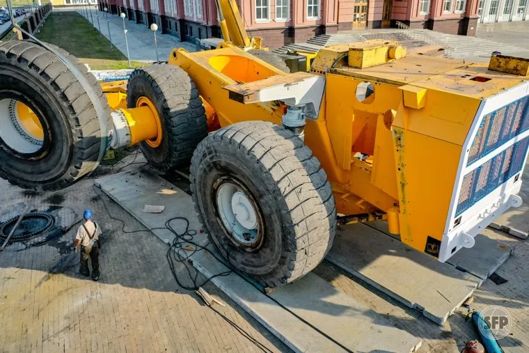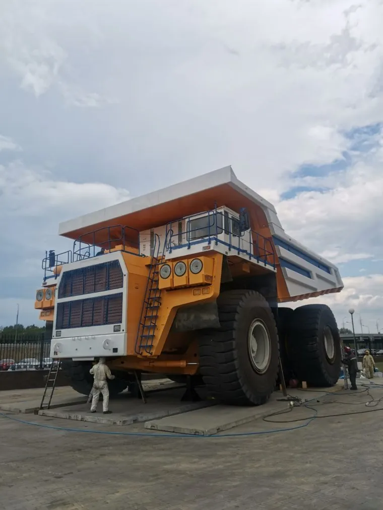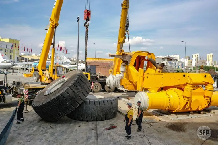 «Чтобы доставить в музей новый экспонат, понадобилось восемь грузовых платформ длиной более 20 метров каждая. Перевозили самосвал в разобранном виде: отдельно колеса, разрезанный на три части кузов, рама, топливные баки, редукторы мотор-колес, шкаф управления», — рассказали в музее автомобильной техники.