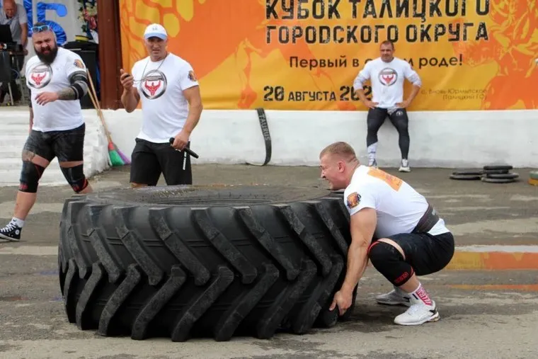 Турнир состоялся в день 345-летия села. Спортсмены тягали бревно, шар весом 300 кг, носили 40-литровые бидоны с водой и огромные шины. Самое сложное задание — сдвинуть с места настоящий трактор для полевых работ.