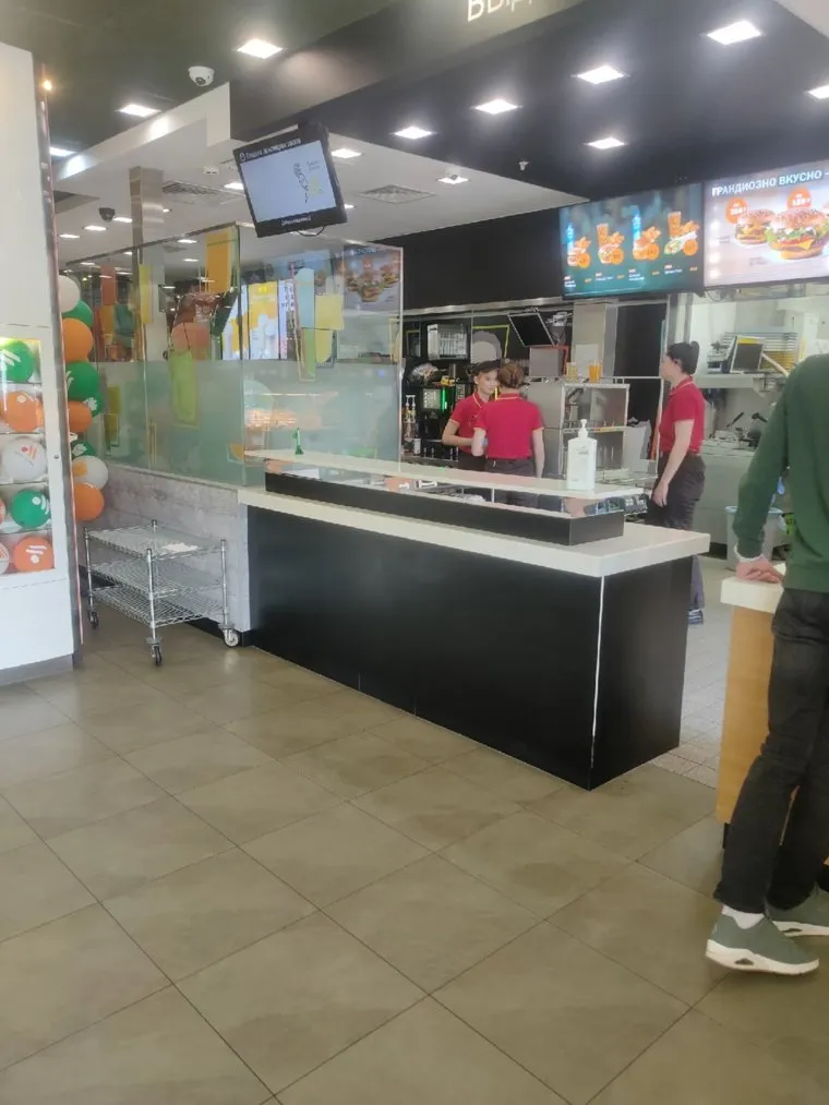 «Точка у ЦУМа отрыта. На входе приветливо встречает персонал, желает доброго утра. У двери развешаны воздушные шарики, но атмосфера праздника пока не ощущается. Посетителей мало. Меню сильно урезано — позиций немного. „Колы“ нет, зато есть российский аналог», — сообщил корреспондент агентства.