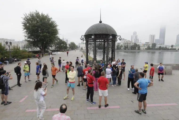 Около сотни свердловчан поддержали Ройзмана, выйдя на пробежку. Фоторепортаж