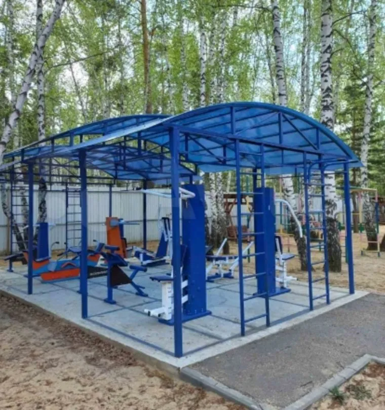 Рядом расположены прогулочная зона, детская игровая площадка и комплекс спортивных тренажеров