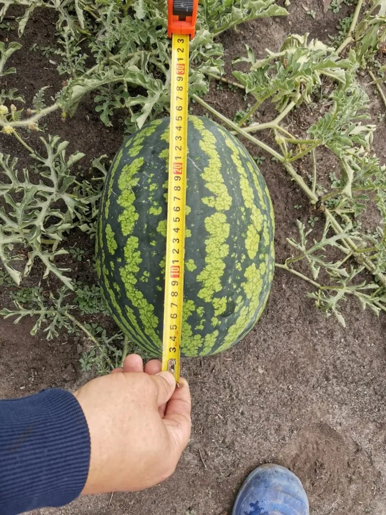 «Вот такой у нас вырос арбуз в этом году», — подписала опубликованный снимок жительница города. На снимке видно, что длина ягоды составляет 26 сантиметров. В комментариях под постом местные жители опубликовали фотографии своего урожая. Кроме арбузов, катайцы поделились фотографиями созревших дынь.