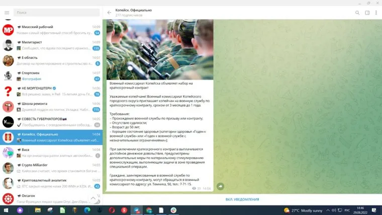 Жителей Копейска зовут на службу в зону проведения спецоперации. Скрин