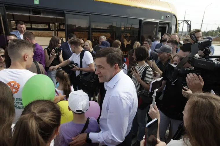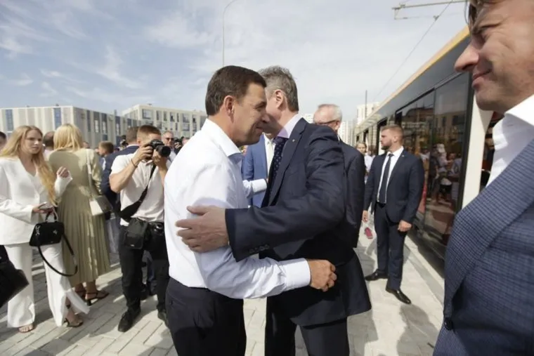 Губернатор Евгений Куйвашев запустил трамвайную ветку Екатеринбург-Верхняя Пышма. Вместе с ним от станции «Фрезеровщиков» до конечной — «Трамвайное кольцо» в Верхней Пышме — проехались десяток топ-чиновников (включая мэров двух городов) и Андрей Козицын, бывший гендиректор УГМК, при котором реализовывался проект, передает корреспондент URA.RU.
