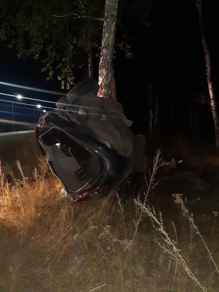 В поисково-спасательной службе URA.RU сообщили, что от удара о ствол дерева автомобиль сложился пополам. Спасателям пришлось использовать инструмент, чтобы снять авто с дерева, и достать погибшего водителя из салона.